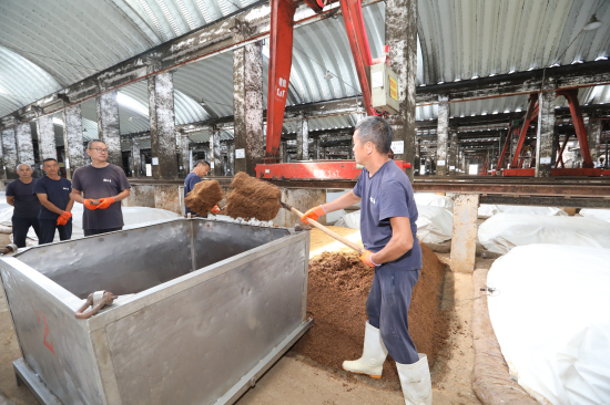 金秋開窖,佳釀天成。與會領(lǐng)導(dǎo)及特邀經(jīng)銷商代表、消費者代表移步窖池區(qū),秦玉龍、曾洋共同揭開紅綢,開啟稻花香2025年秋釀的第一口窖池。經(jīng)驗豐富的釀酒師傅上前,嫻熟地鏟去窖池封泥,開始分層起糟,整套動作一氣呵成。一股股混合著窖香、糟香、酯香的氣息撲面而來,令觀者無不沉醉其中。